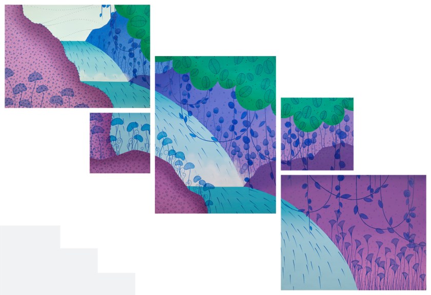 Vi presento la più grande opera che ho realizzato in vita mia, una composizione di quadri che mi ha costretta ad uscire dal mio piccolo studiolo per avere a disposizione degli spazi più ampi in cui poter lavorare contemporaneamente sulle 5 tele che oggi formano questo polittico.