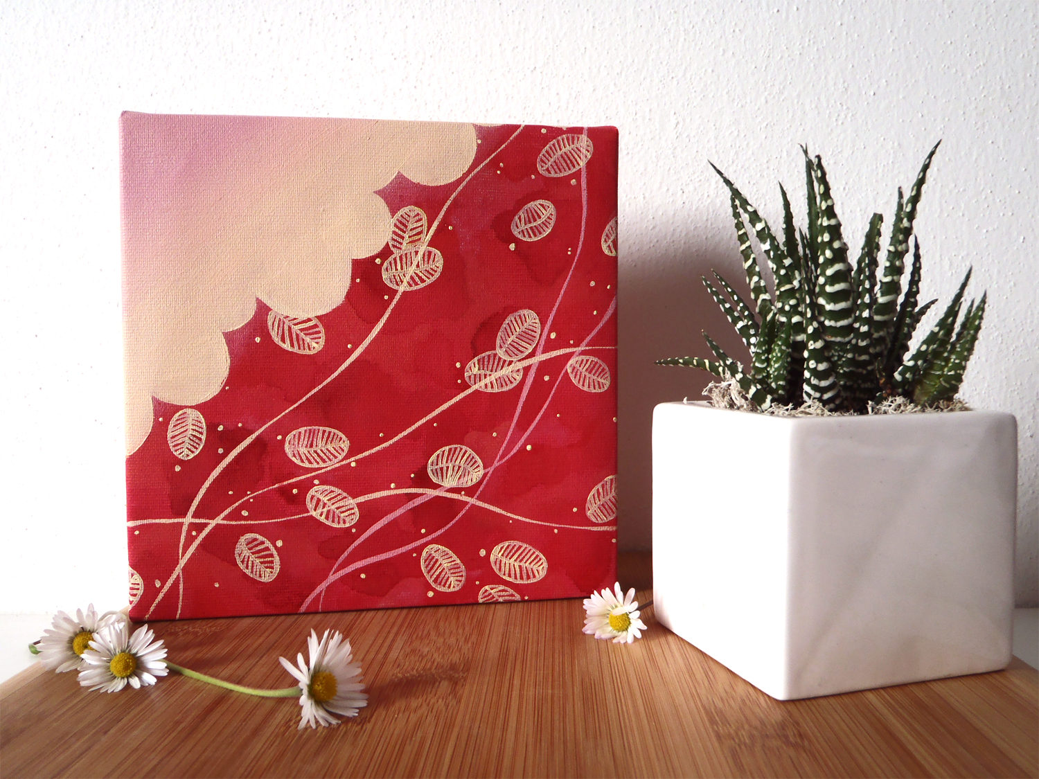 Mentre attendo che il colore dell’opera su cui sto lavorando si asciughi, oggi trovo finalmente il tempo di mostrarvi un piccolo lavoro che ho realizzato questa primavera… è appena iniziata l’estate ma ancora posso cogliere il profumo che ha ispirato questa piccola opera!